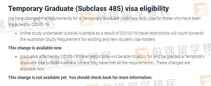 刚刚澳洲移民局公布了关于免掉受疫情影响的学生们续学签费用的更多细节,同时也公布了一些学生签证的条款变更,以及485工签的一些变化。